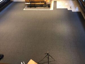 Nachdem die Bänke entfernt wurde ging es mit großen Schritten weiter. Der Boden wurde gereinigt und danach ein spezieller Haftgrund aufgetragen. Im Anschluss haben unsere beiden Vorstandsmitglieder Wolfgang und Peter richtig losgelegt und in Rekordzeit die Bodenfliesen gelegt. Vielen Dank an die Beiden für ihre großartige Arbeit!